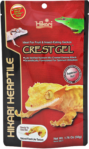 - Розроблено після численних випробувань в Водній лабораторії Hikari® і успішного розведення чубатих геконів виключно з використанням CrestGel™.