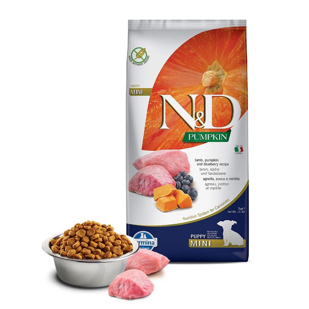 Беззерновий сухий корм Farmina N&D для цуценят малих порід, ягня з гарбузом і чорницею, на вагу